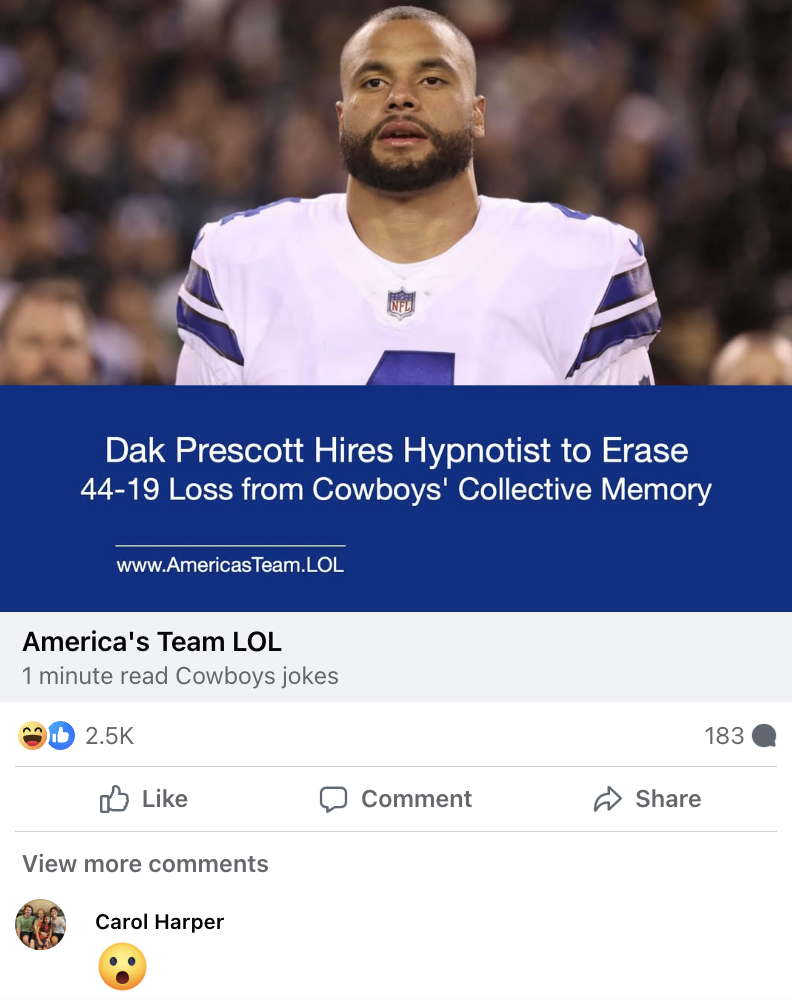 America’s Team LOL is the only Cowboys coverage designed to make you laugh instead of cry. Think fake press releases, parody headlines, and Onion-style takes on everything from draft day disasters to Sunday heartbreak.